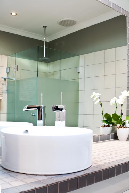 Rozelle glass installed a big cut to size wall mirror, frameless frosted glass shower screen including European stainless steel brackets and hinges, glass tiles and small corner glass shelves
